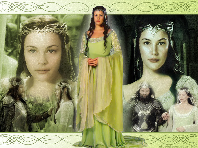 Galadriel favors shimmering white gowns shot through with silver thread, while her husband Celeborn wears elaborately embroidered silk robes. Other inhabitants of Lorien, typically wear light layers of wool in muted shades of green and gray.