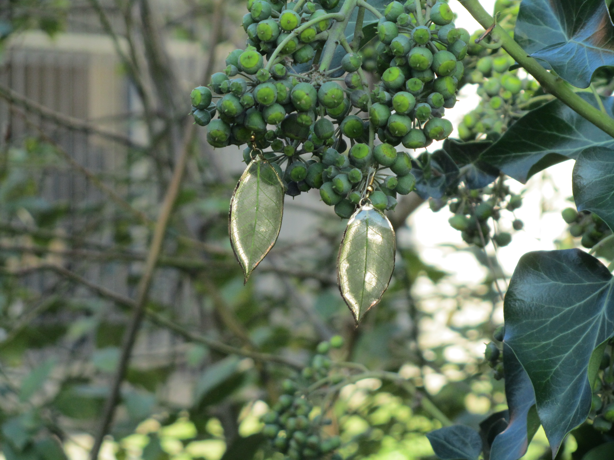Rubber tree leaf earrings bought in Thailand