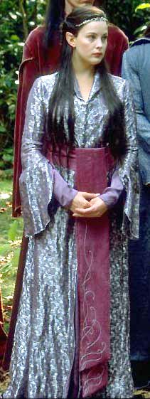 The immortal Elves are fairest and wisest of all beings, and their elegant clothing reflects this high status. Rivendell residents typically wear rich autumn hues and beautifully draped fabrics like silk, velvet, brocade, chiffon, and suede. Elves are very connected to the environment, so their clothing always has an organic quality; medieval style and Art Nouveau also inspired their film look.