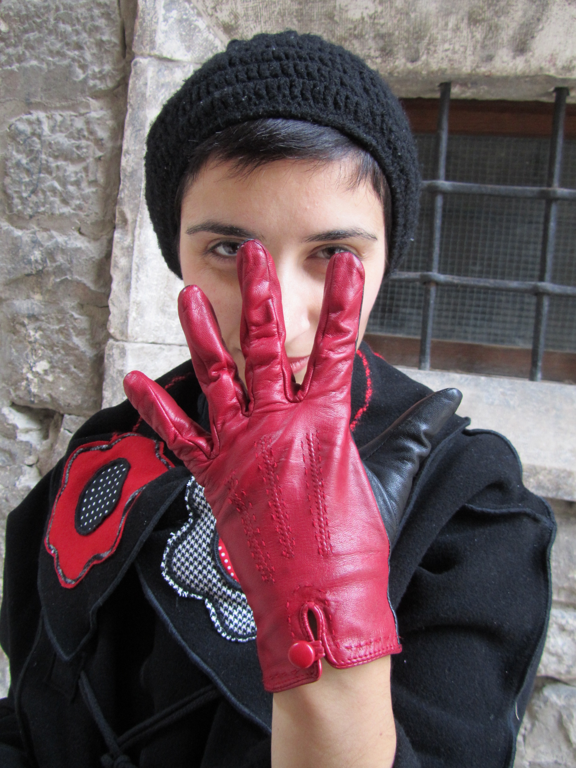 There is something rather special in gloves. We often carry handbags, and wear shoes, belts and even hats, but gloves…not so much. Gloves had a huge role in fashion and in development of man kind, but they have always been a bit special. Firstly worn for protection in cold winter days, later they developed into a status symbol. I would give anything to live in the days when it was perfectly normal to wear gloves to the theatre, parties, dinners…even just walking around town. So these days cold weather is the perfect excuse to let my glove collection do all the talking! These black and red leather gloves are the first pair of gloves I have ever bought…they protect my hands of course, but with them I feel elegant, special and a bit devilish all at the same time :).