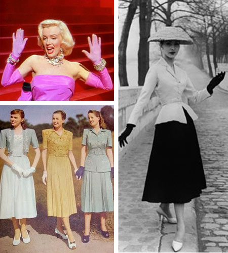 Gloves during the 50s with famous pink gloves worn by Marilyn Monroe in movie Gentlemen Prefer Blondes