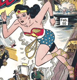 Wonder Woman had strength that was comparable to the Superman. In one of her earliest appearances, she is shown running easily at 60 mph, and later jumps from a building and lands on the balls of her feet.