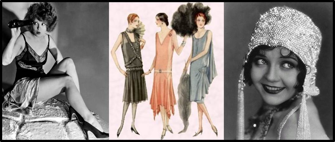 To look more like a boy, women tightly wound their chest with strips of cloth in order to flatten it (I don’t have problems with that!). The waists of flapper clothes were dropped to the hipline. Women started to wore stockings.