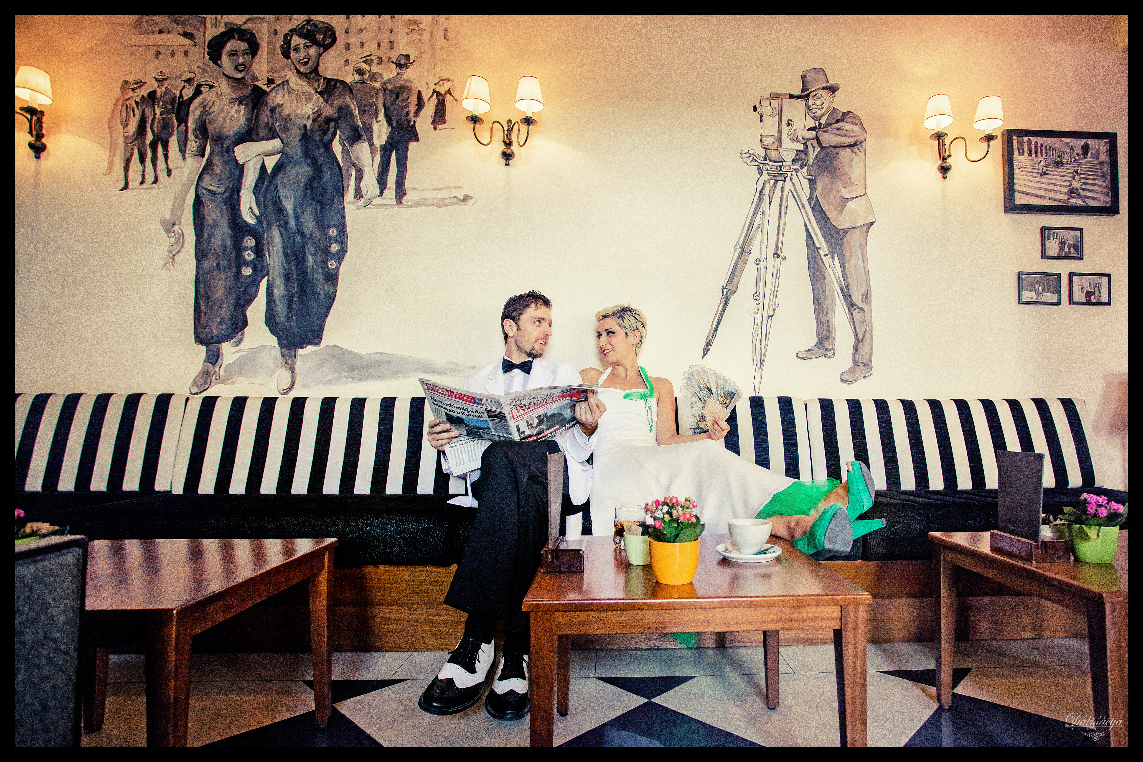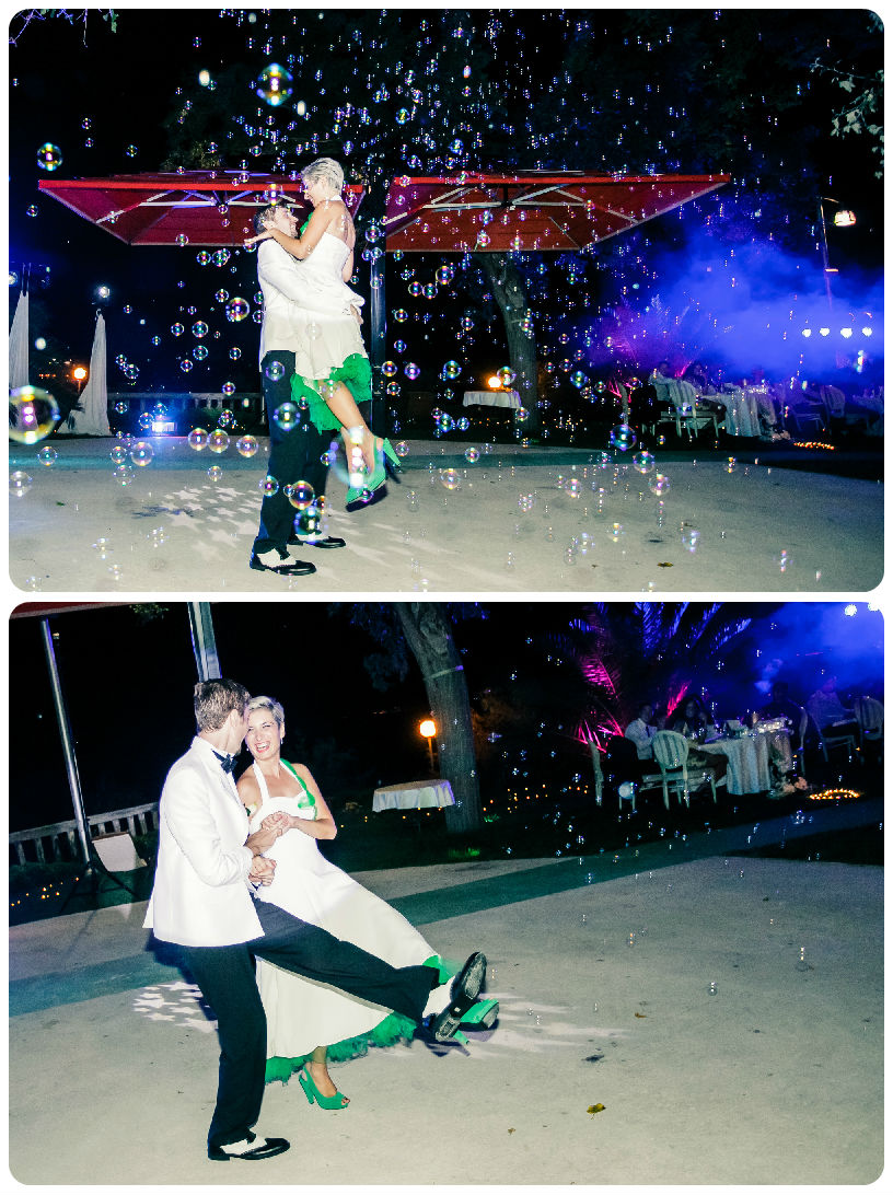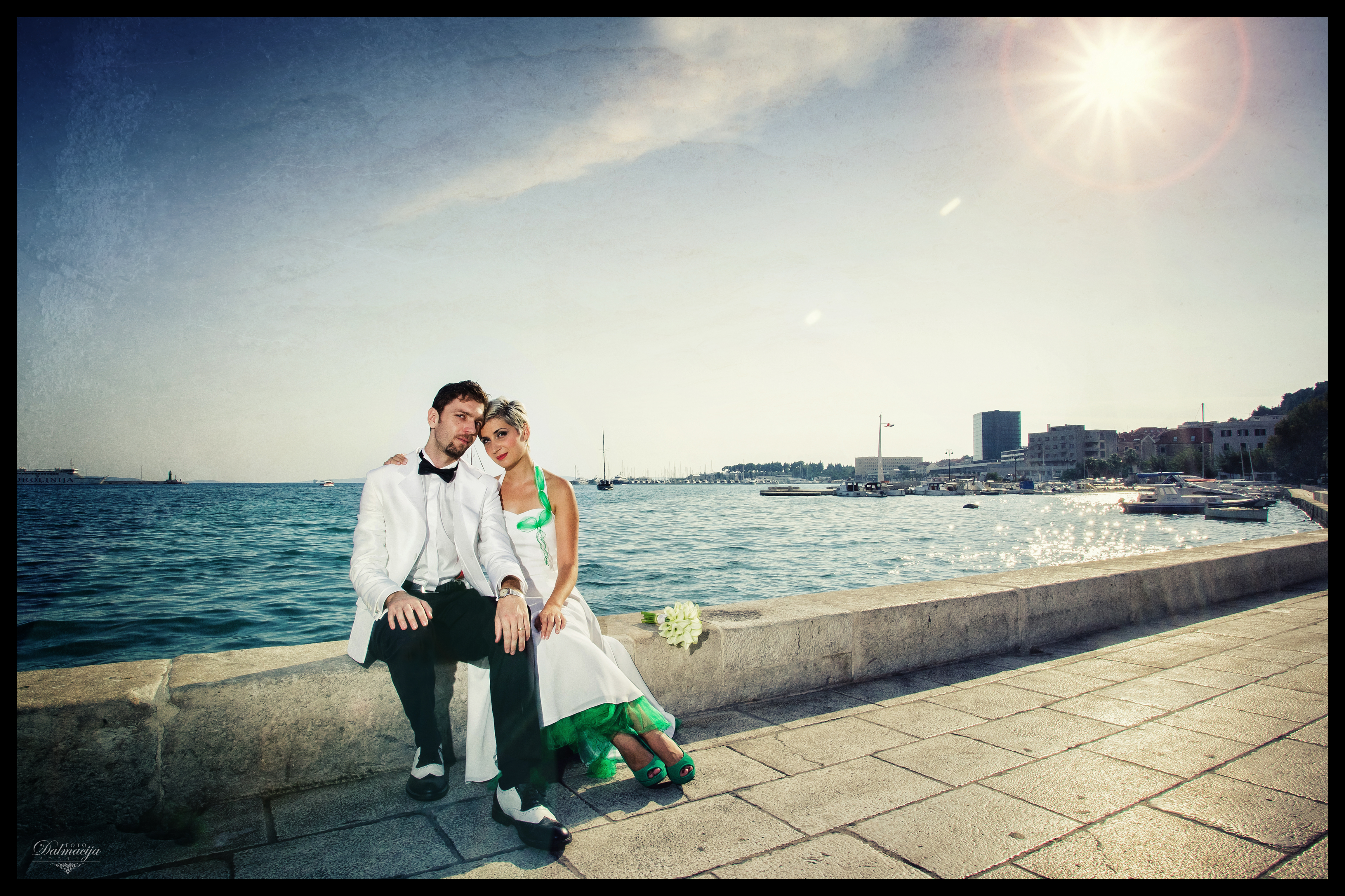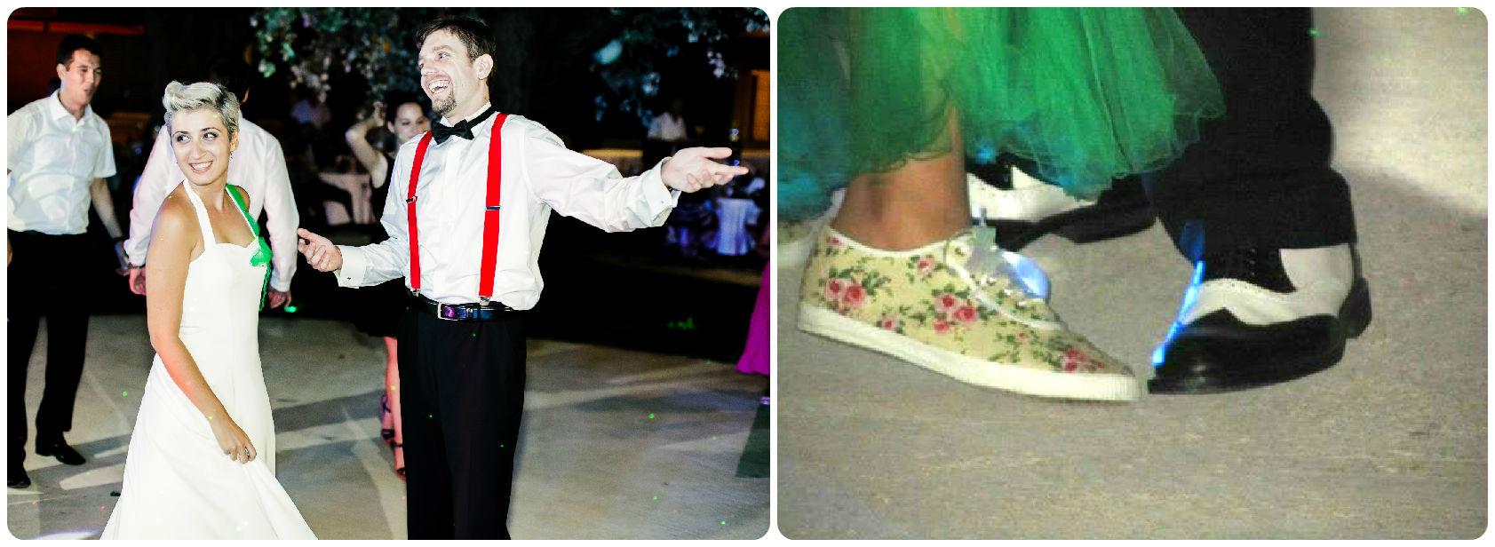 It all started with the shoes – these wonderful H&M green pumps. I wanted simple wedding dress but with my classical touch 😉 . I chose my favorite shape – classical 50s silhouette with green petticoat to match the shoes. The main goal was to look good and stay true to my style, but also to be able to dance the whole night – and I can say I achieved it ! The dress and the hair piece were made by my friend Ivana and her wonderful mother, from Iwanine Rukotvorine. The look was completed with pearl earrings (gift from my mother-in-law!), Make-up By Katja, and my fierce peroxide blonde hair-do, thanks to my wonderful hair stylist Željka!