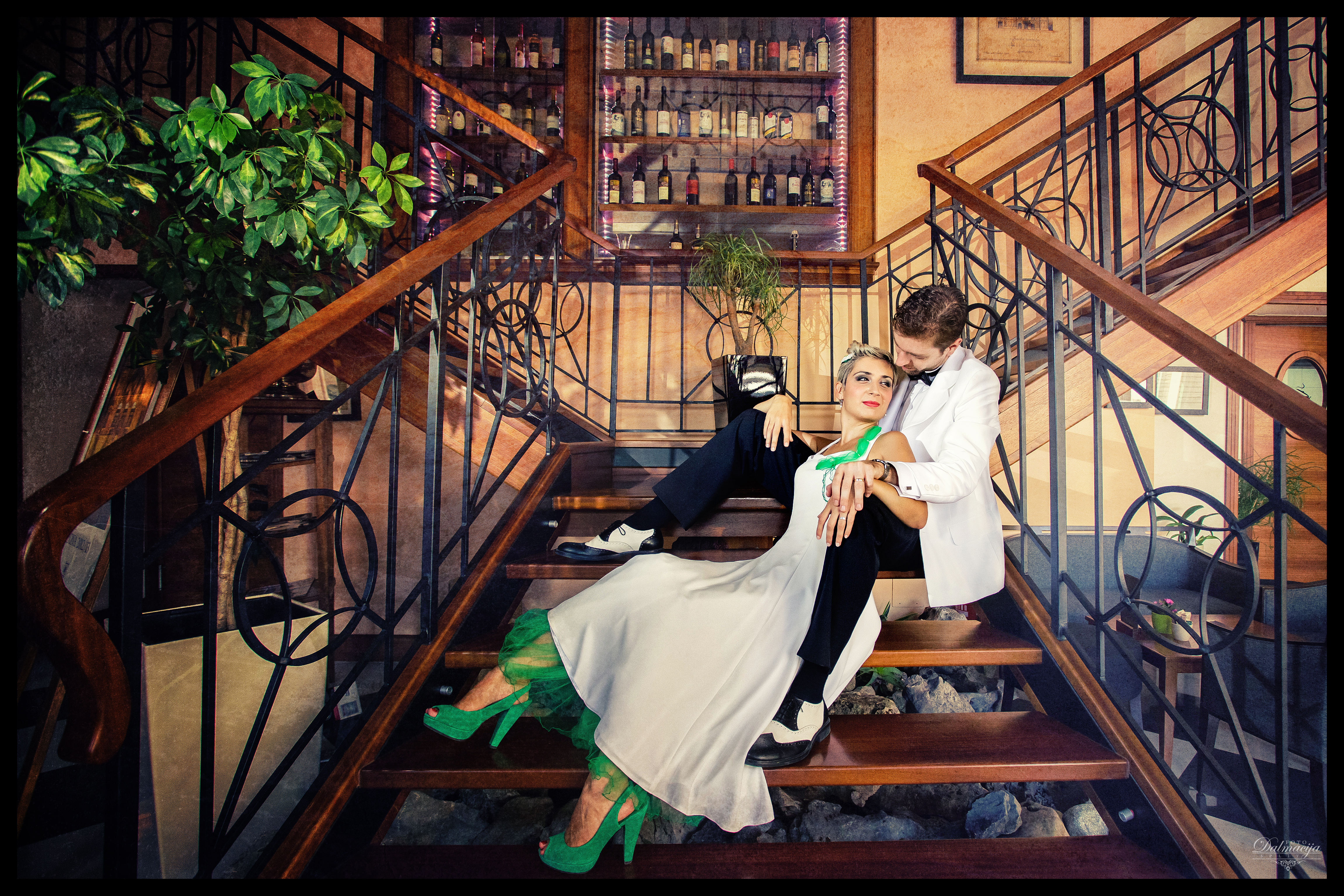 The 50s are in the air! Marko bought his fantastic shoes in Sarajevo when he saw them in the windows of the local shoemaker’ store. His white jacket was custom made at “Splitska Grandeca” boutique in Split. Red suspenders were my engagement gift 🙂 !