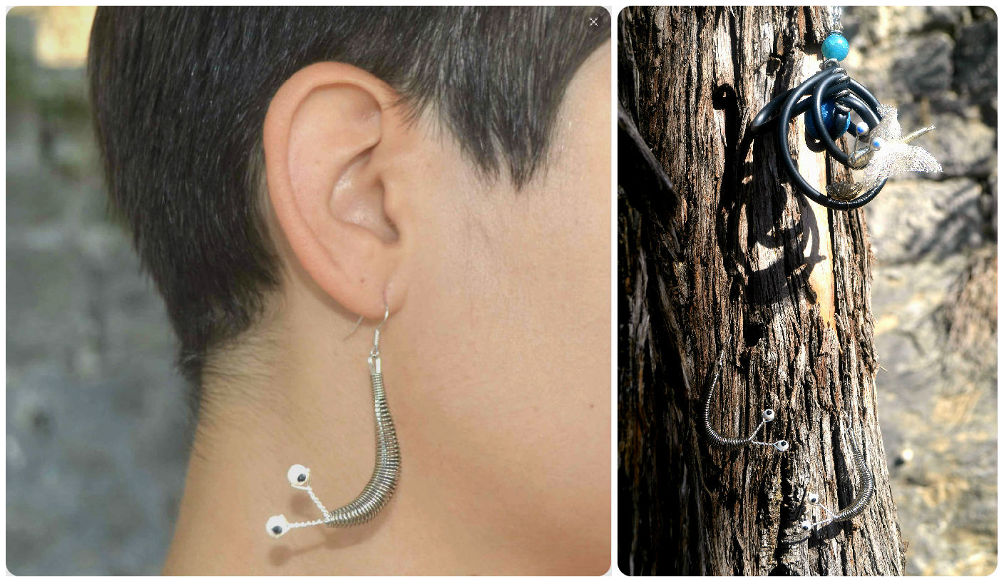 Necklace and earrings from “Nudist” collection by very talented and one of my all time favorites π “Deni Design” from Ε ibenik, Croatia – as his creator Daniel told me, this little “Nudist” snail obtained himself the wings and now he thinks he is a bird – so he even built himself a nest :). True dreamer and adventurer – just like it’s new owner π