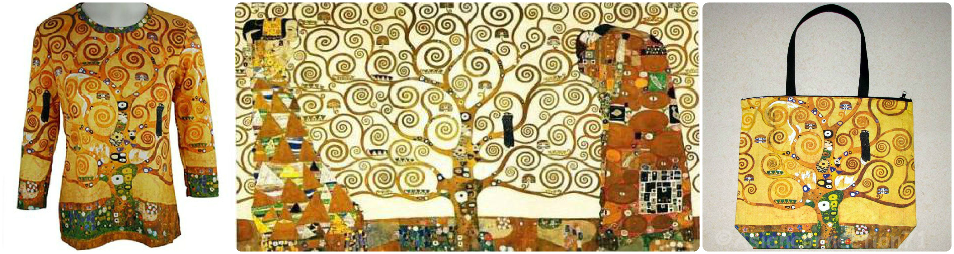 Painting “Tree of Life” by Gustav Klimt as inspiration for T-shirt and handbag