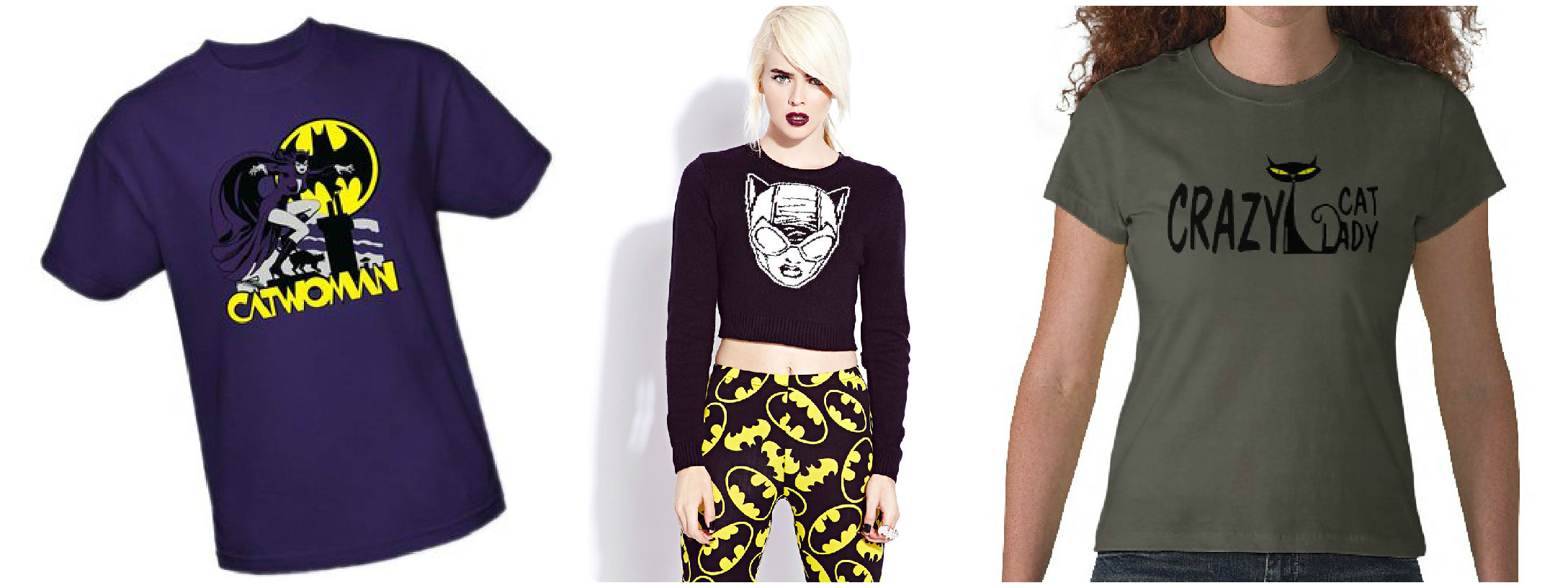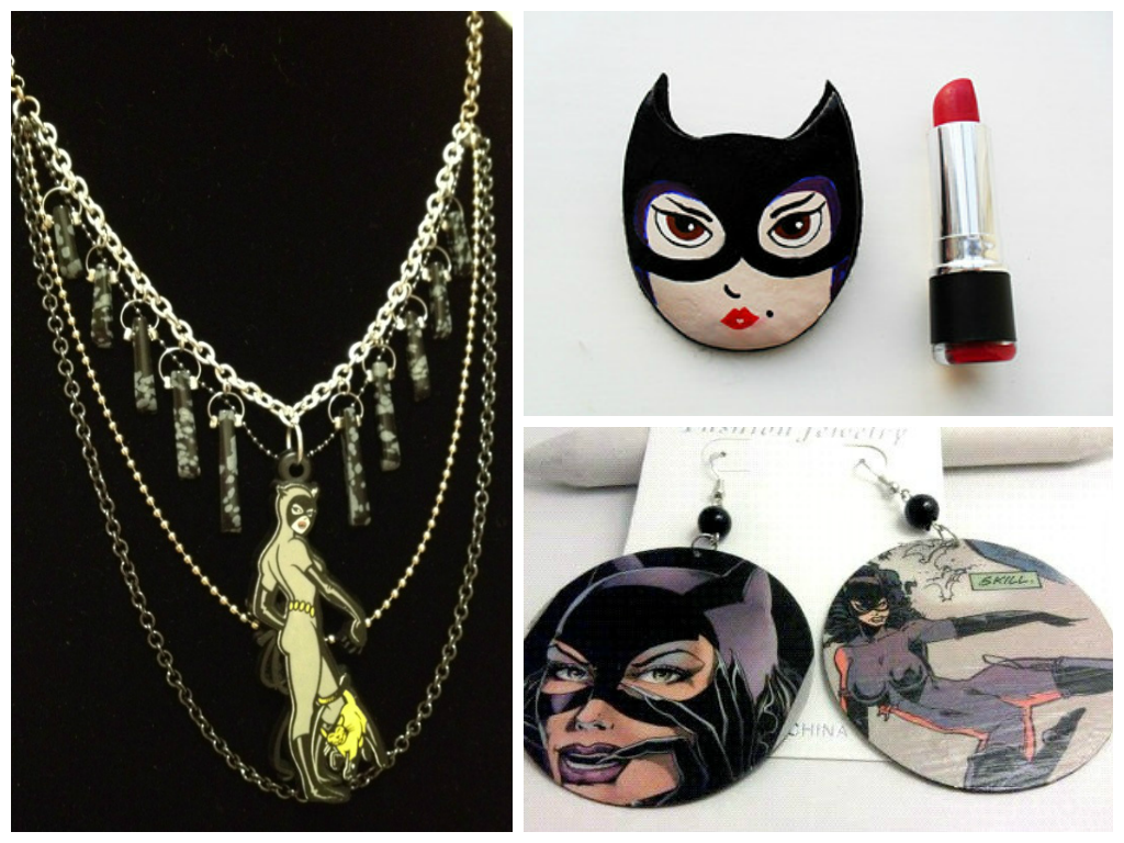 Catwoman necklace, pin and earrings found on Etsy