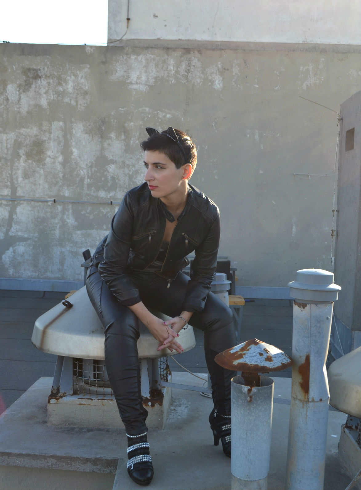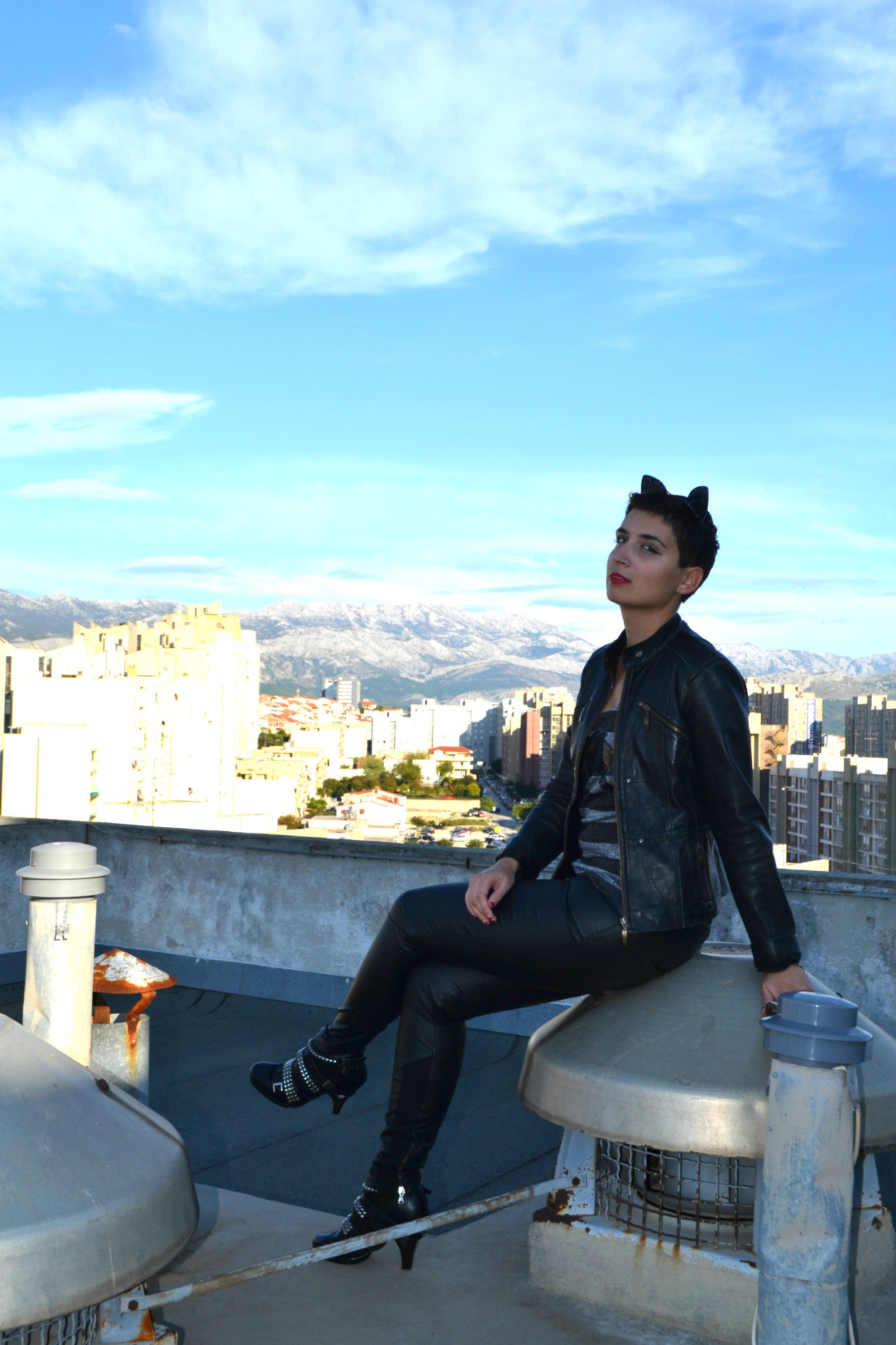 Fake leather pants by Zara; custom made black leather jacket bought in local tailor shop in my hometown Split