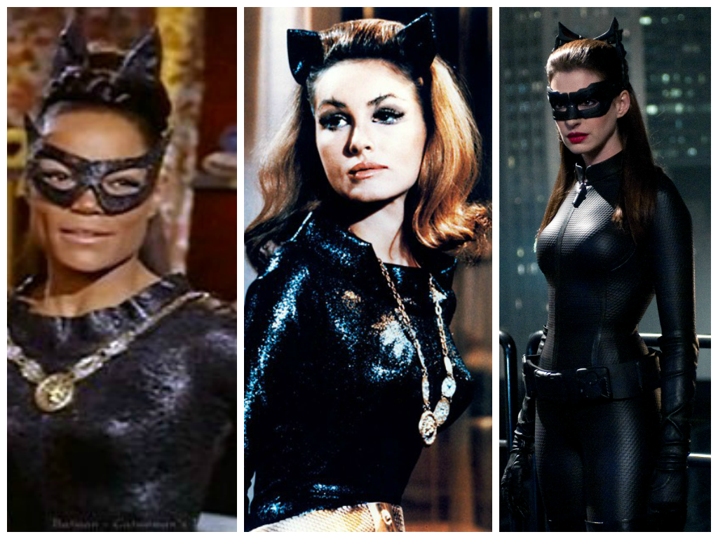 Eartha Kitt and Julie Newmar as Catwoman in 60s “Batman” TV series; Anne Hathaway in 2012 Christopher Nolan movie “The Dark Knight Rises”