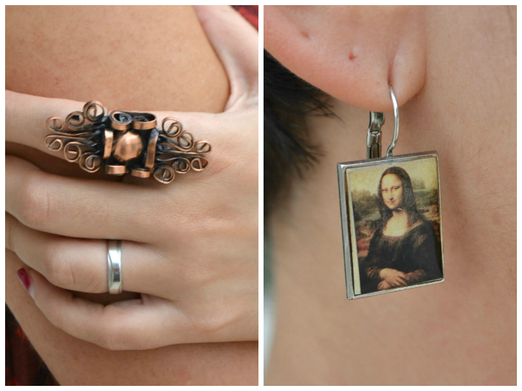 Copper ring bought in Mostar; Mona Lisa themed earrings by Illegale Jewelry, Croatia