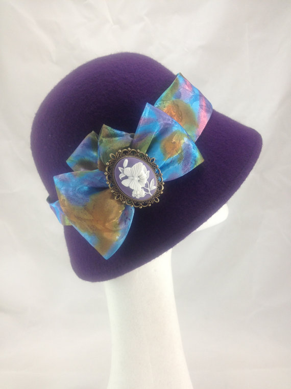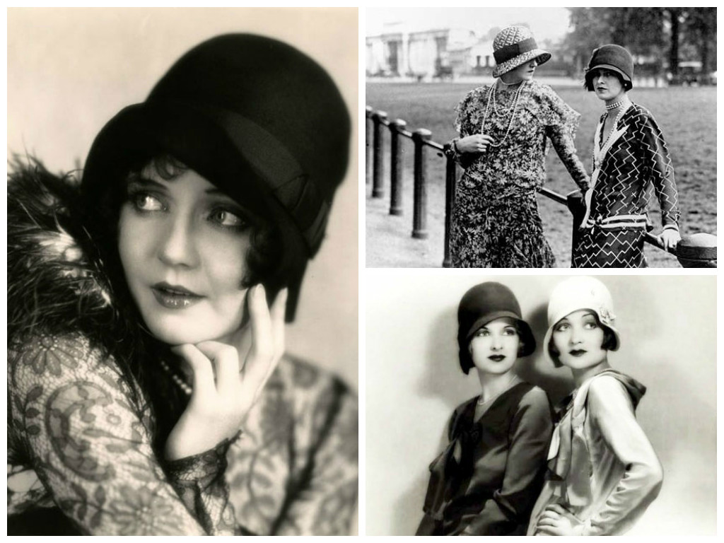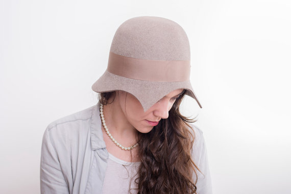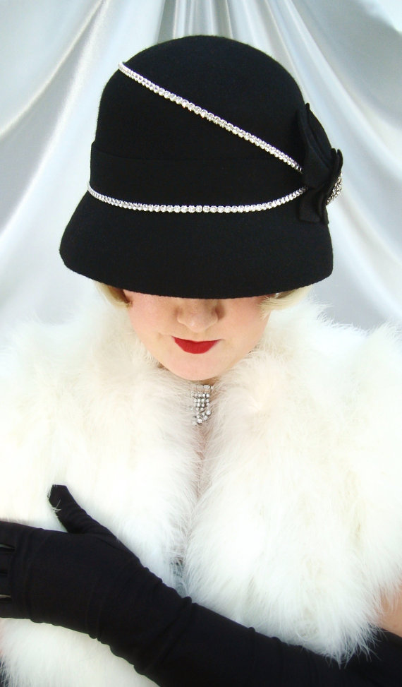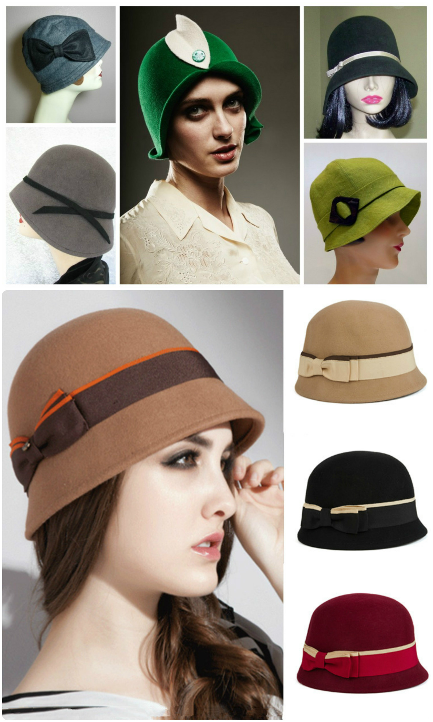 A Cloche hat (Cloche meaning bell in French) was created in 1908, but became fashionable in the 1920s. These hats were wildly popular with the young flapper girls of the 1920s, because they allowed women to tuck their hair up into the hat to give the appearance of having short hair, which was quite scandalous in those days (cough, cough 😉 ).