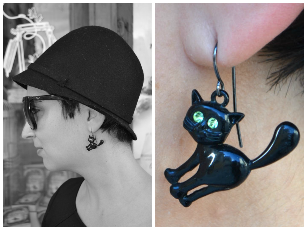 Cloche hat by Sisley; kitty earrings were a gift from my sister