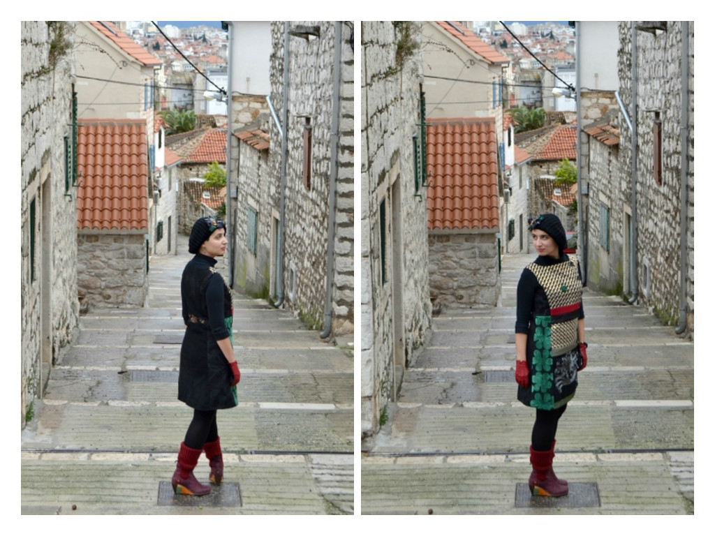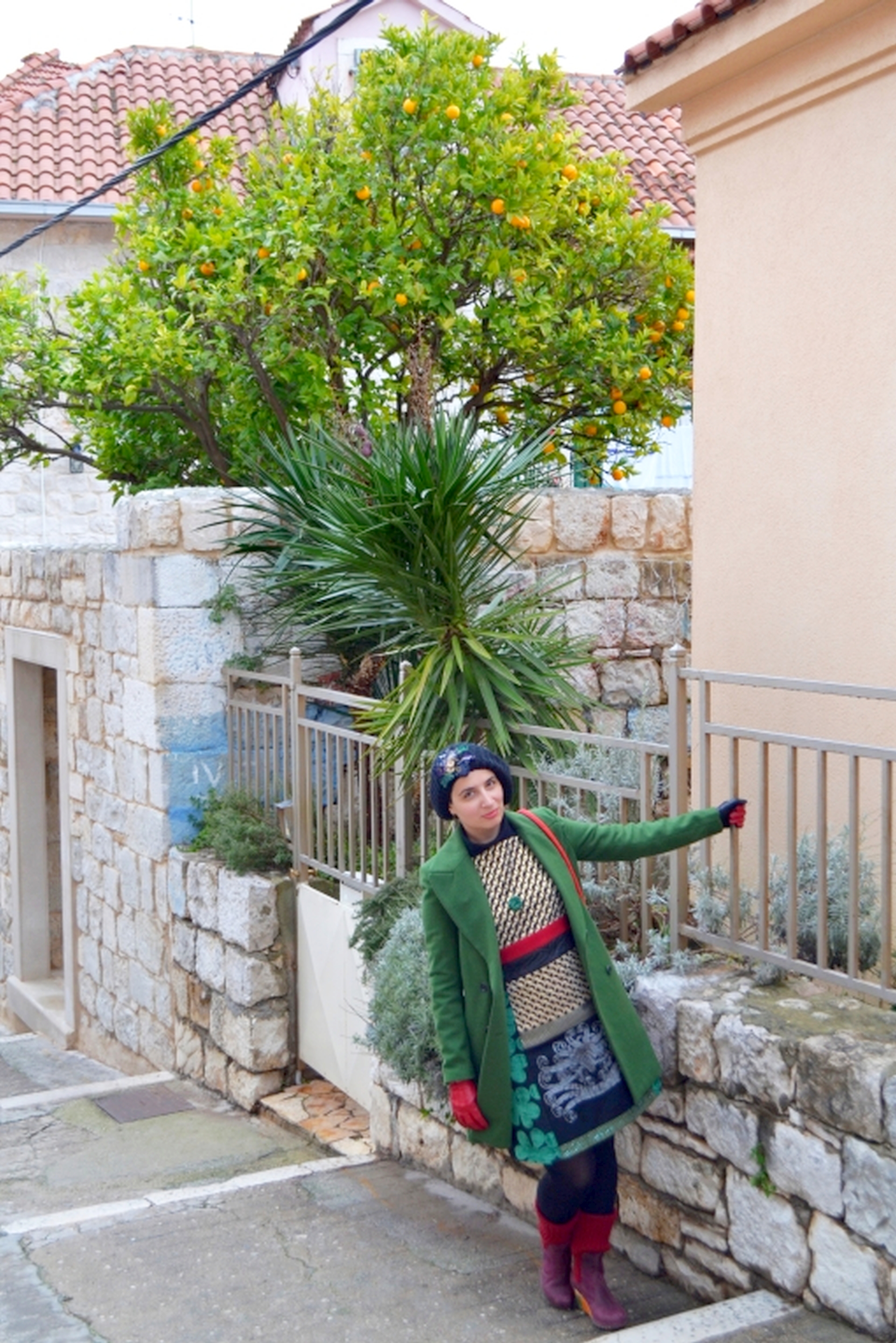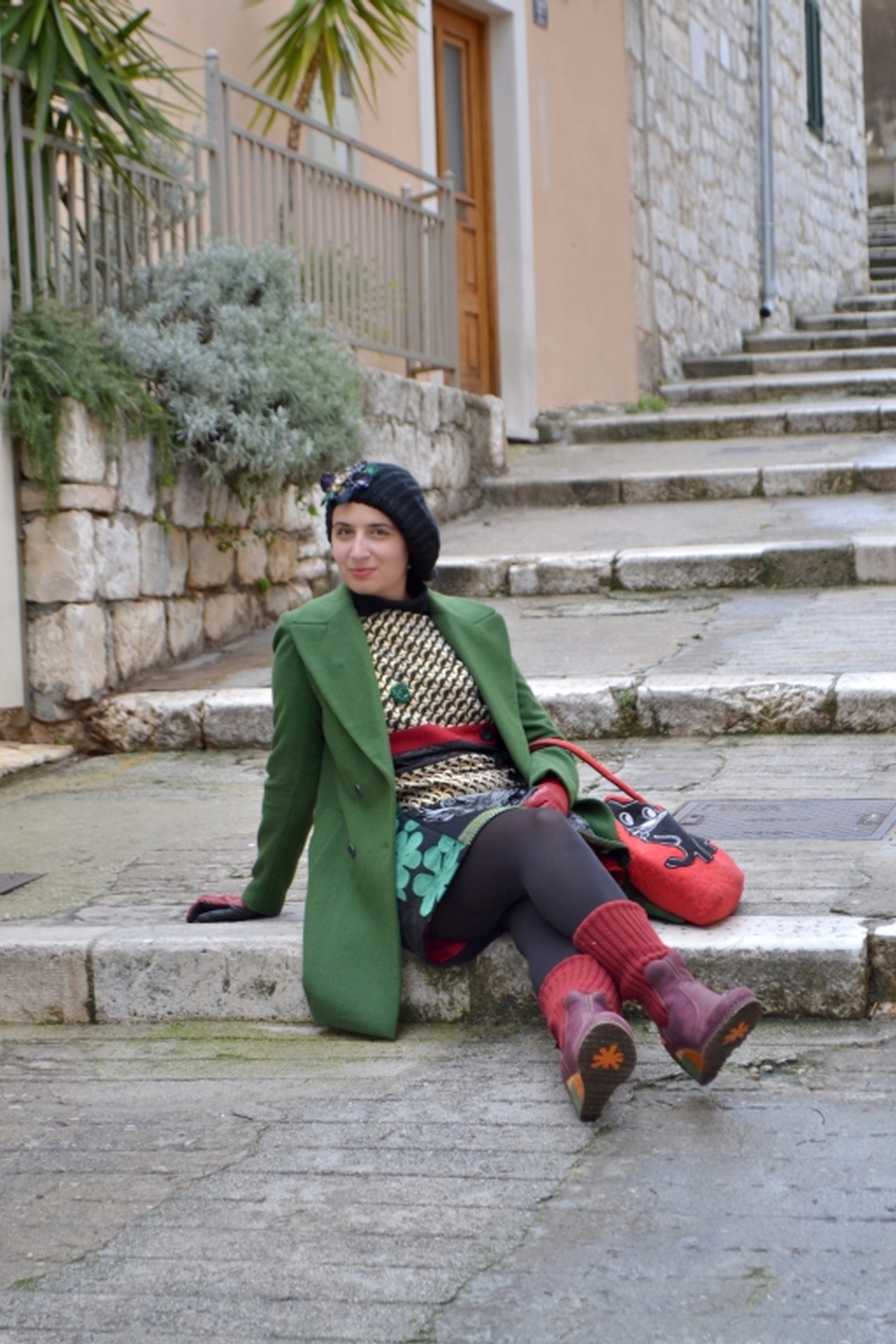 Wool cap by Desigual, bought on E-bay; Turquoise earrings by Kamena Duga, Croatia; Malachite necklace by Viletina Art and Design, Croatia