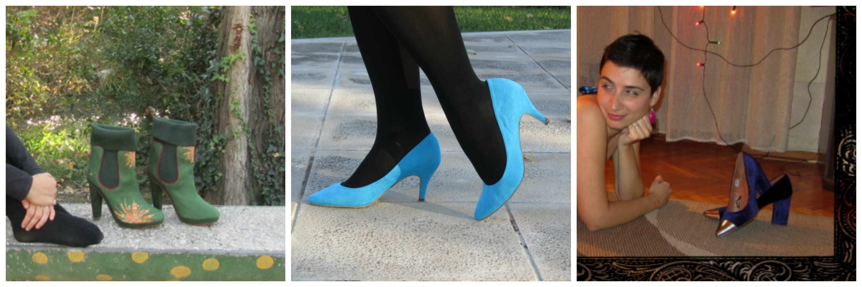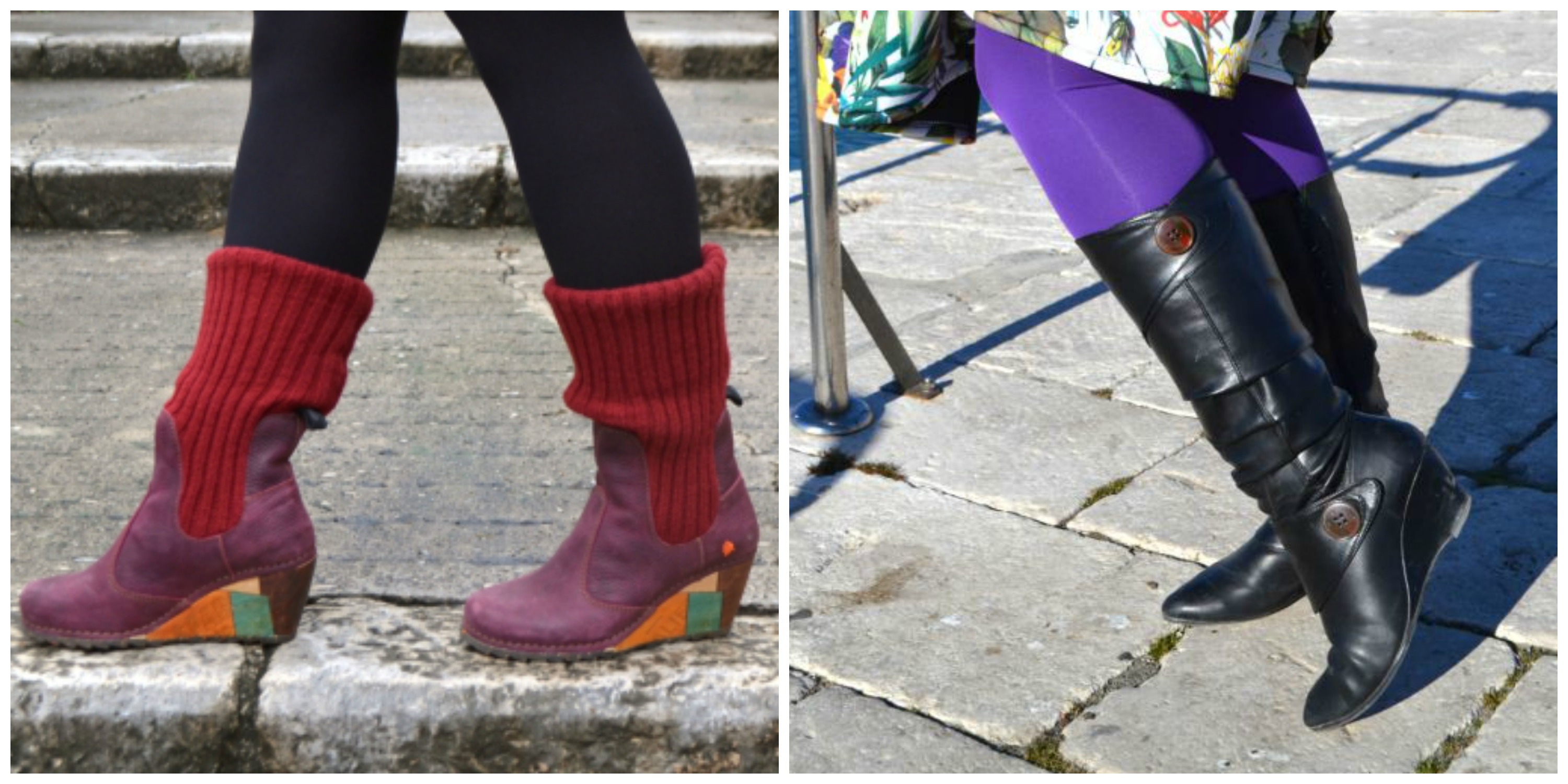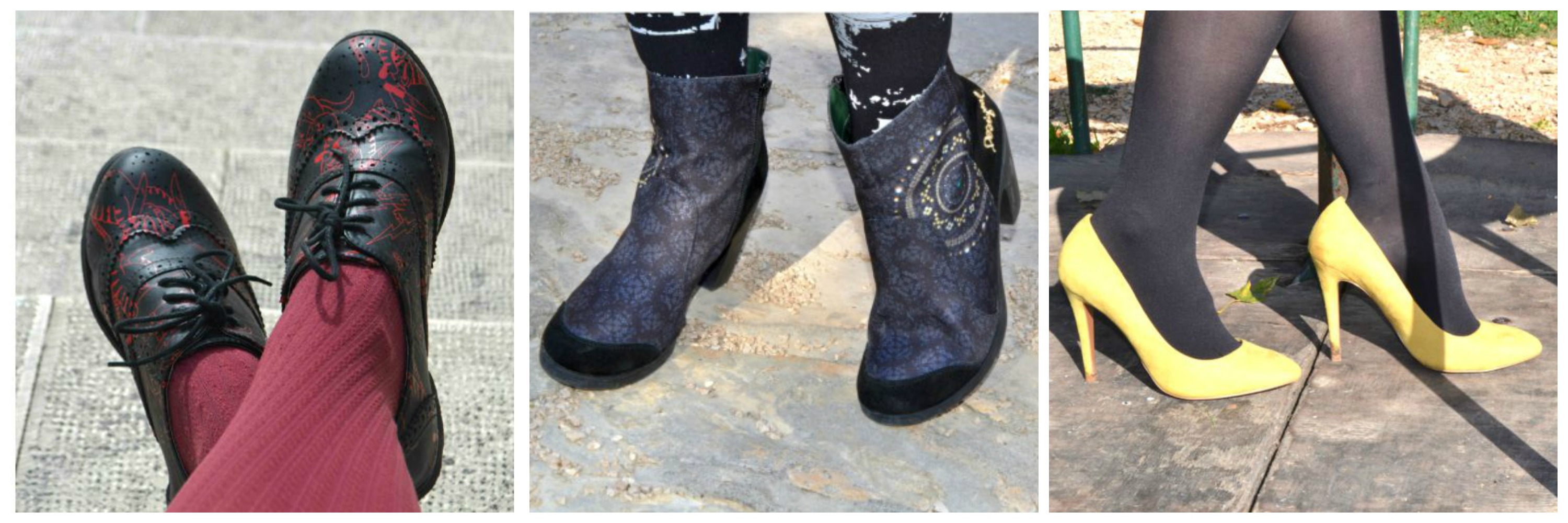 I love shoes but they don’t love me. I have very bad feet and have to wear sturdy shoes, no heels or flimsy sandals or heels, no wedges etc. Platforms are the only shoes with height I can wear, so those and Birkenstocks, some pairs of dolly shoes and boots. I have about 20 pairs of shoes (because of this restriction), those are my preferred styles and my favourites of yours are of course the boots and any brightly coloured pairs of shoes