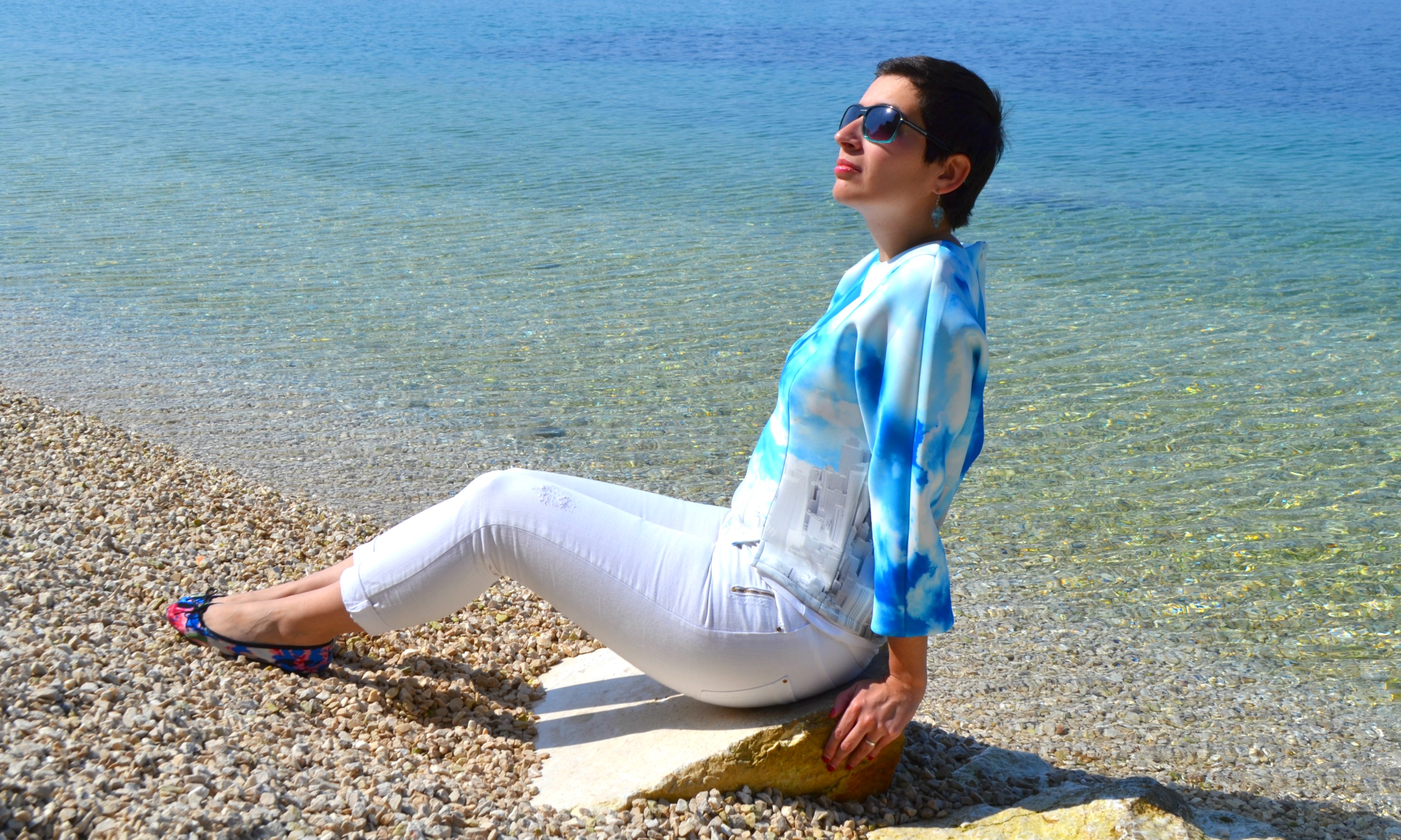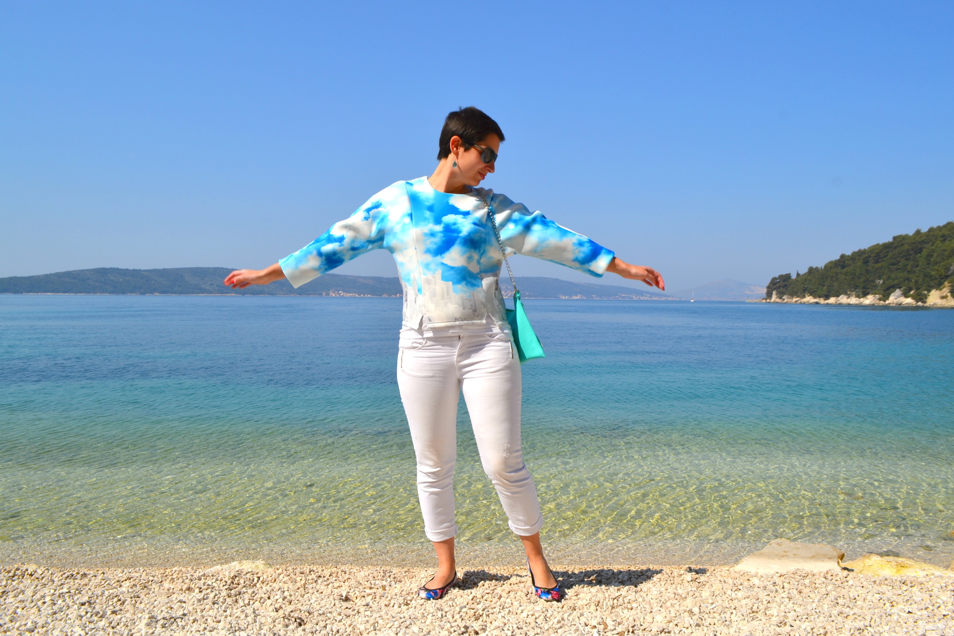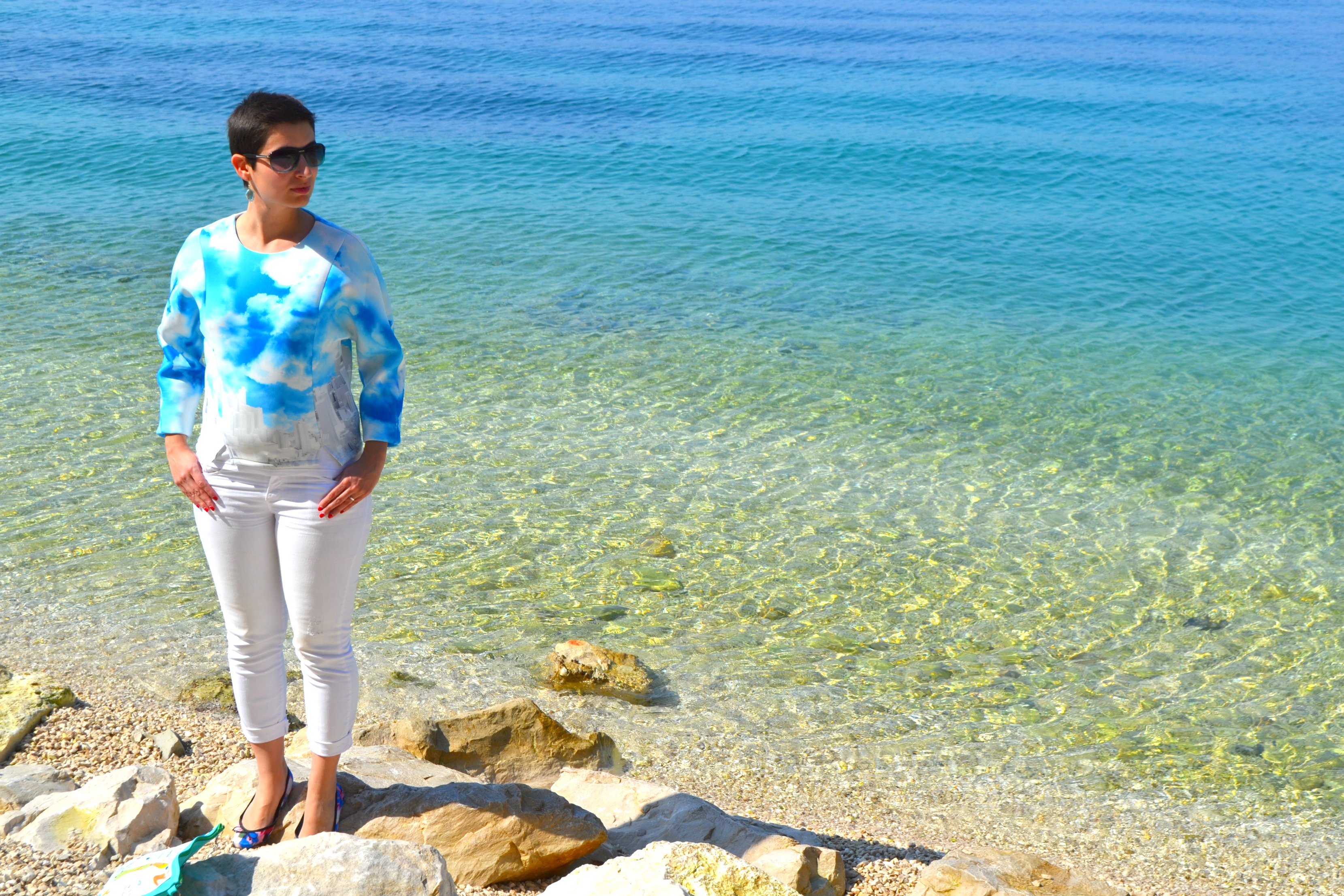 predivna kombinacija.. oblaci na majici se odlično dopunjuju s morem i nebom….a kada smo već kod raja na zemlji i ja sam u Splitu (do srijede) pa bismo mogle i na kavu otići?