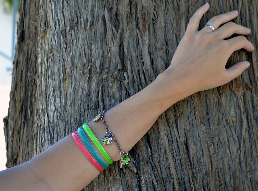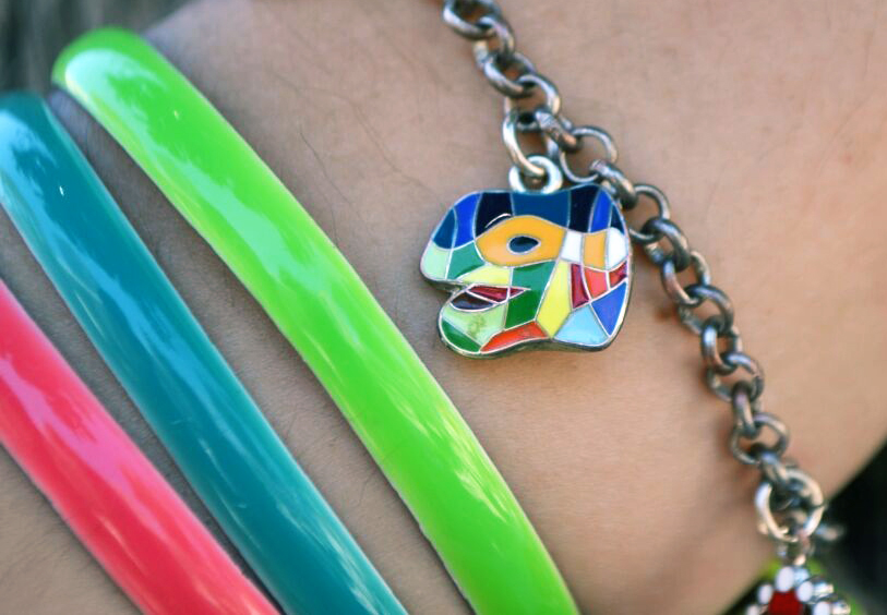 Colorful! The bracelet with the pendant is from Barcelona, in typical Antonio Gaudi style