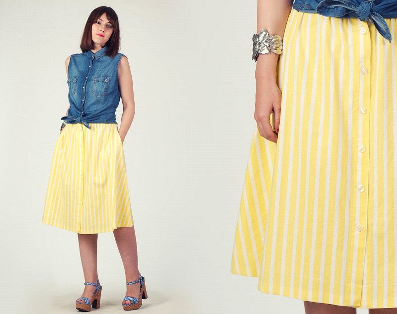 The mini skirt might have been popular, but the midi skirt was, and still remains, a wardrobe staple. It’s a perfect skirt that can work in all styles – business, casual, night out. The combination of a midi skirt and crisp shirt is a great one for both business and casual daytime looks.