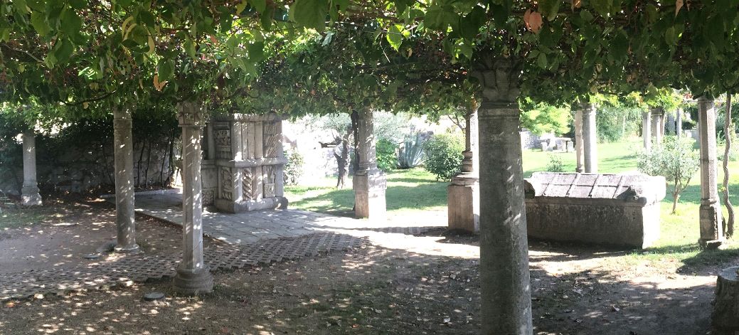 We are going to the Tusculum garden with more of the finds from Salona on display. Tusculum was built in 1898 with its somewhat random use of ancient stonework as ornamentation! Some of these are finds from Salona, others come from the old belfry of the Split cathedral.