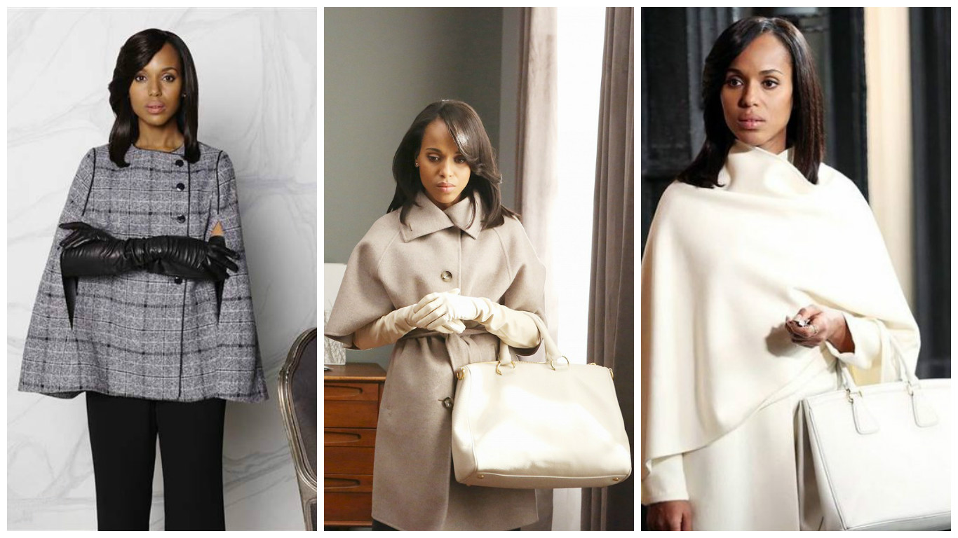 Another prime TV queen of style – Olivia Pope from Scandal! Unlike Blair, Olivia is a mature woman who dresses in neutral colors, and her capes are the height of unassuming, luxurious fashion.